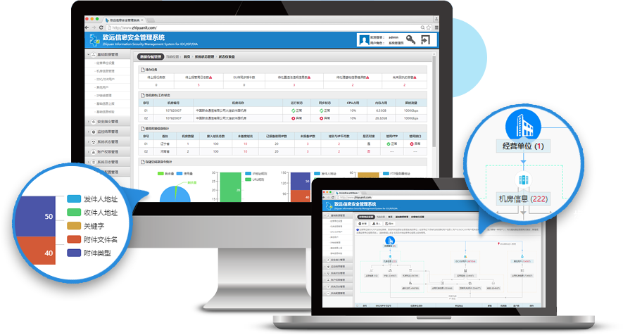 致远安全监管系统(SMMS)是为电信管理部门建设的具有基础数据管理、访问日志管理、信息安全管理、代码表发布功能的安全监管系统。支持多个IDC/ISP经营者的信息安全管理系统(ISMS) 接入,可实现对所管辖范围内所有IDC/ISP的管理。